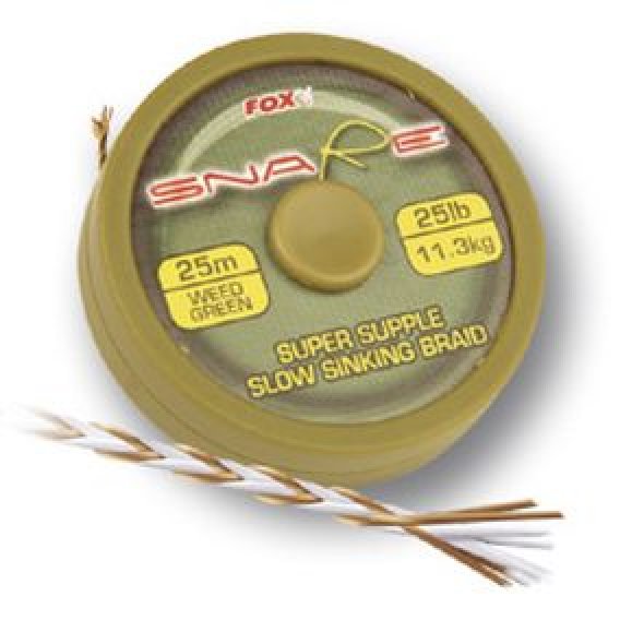 FOX Snare Slow sinking braid (25m) - pomalu potápivé vlákno kulatého profilu s vysokou pevností v uzlu. Je jemné a měkké s vysokou odolností proti otěru. Ideální pro chytání v trvách a mezi překážkami. univerzální vlákno na všechny druhy návazců.