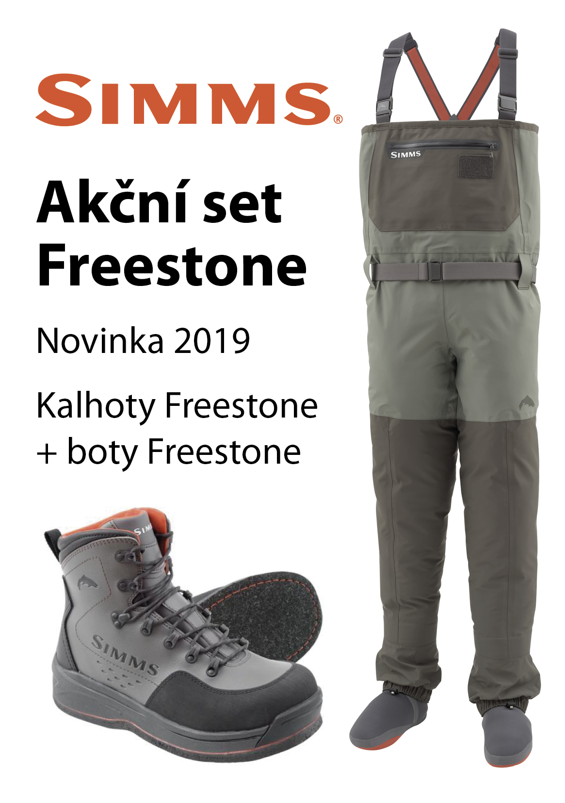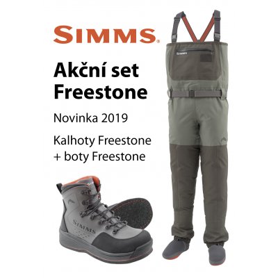Možnost zakoupení výrazně cenově výhodného setu včetně bot Simms Freestone s filcovou a nebo gumovou podrážkou za akční cenu : 12 490 Kč.